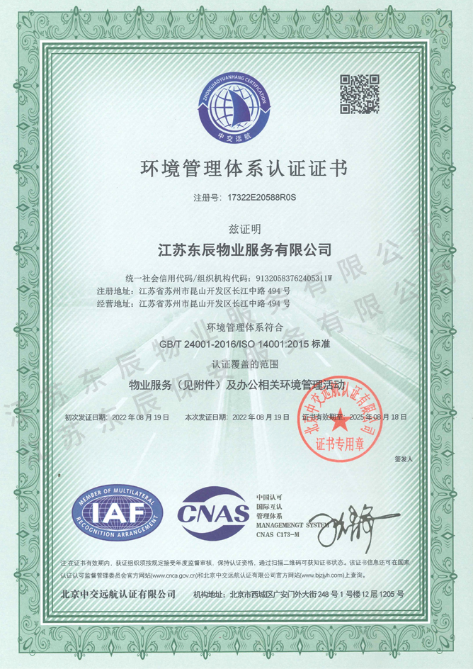 2022-2025年環境管理體系認證證書